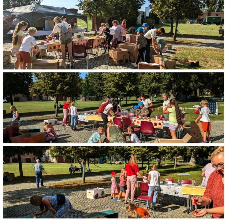 🎨📦Schon am Nachmittag ging es los, die Kinder konnten sich, ihr eigenes Auto aus Pappe basteln, bemalen, bekleben und spielen. Dann gab es eine tolle und gut besuchte Kindervorstellung.🎬🎥